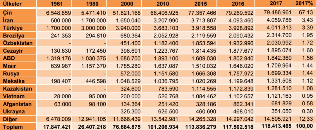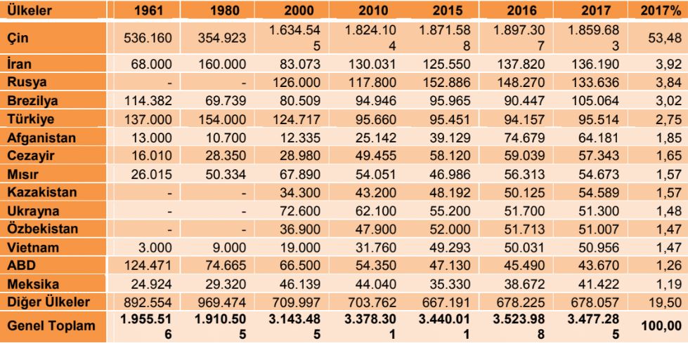 - Dünya karpuz üretimi 110 milyon tonu geçmiştir.