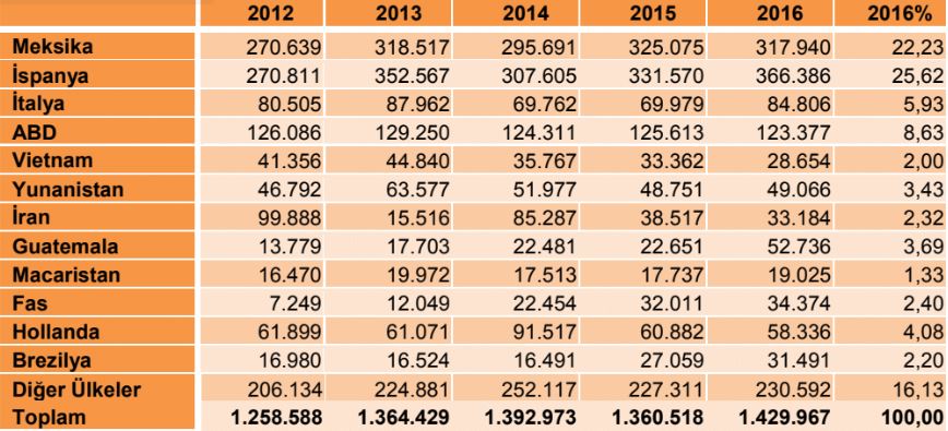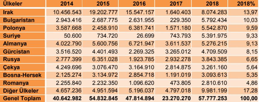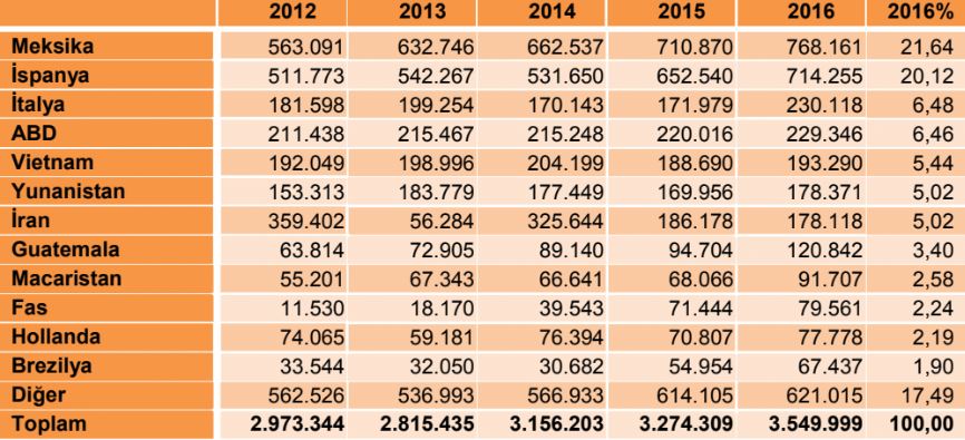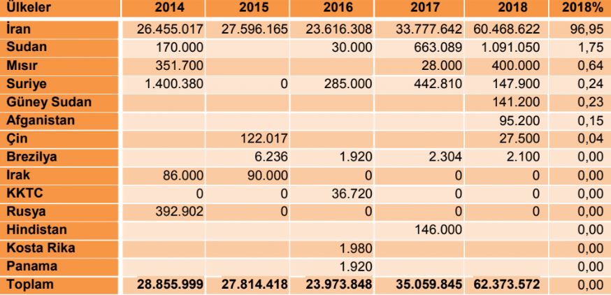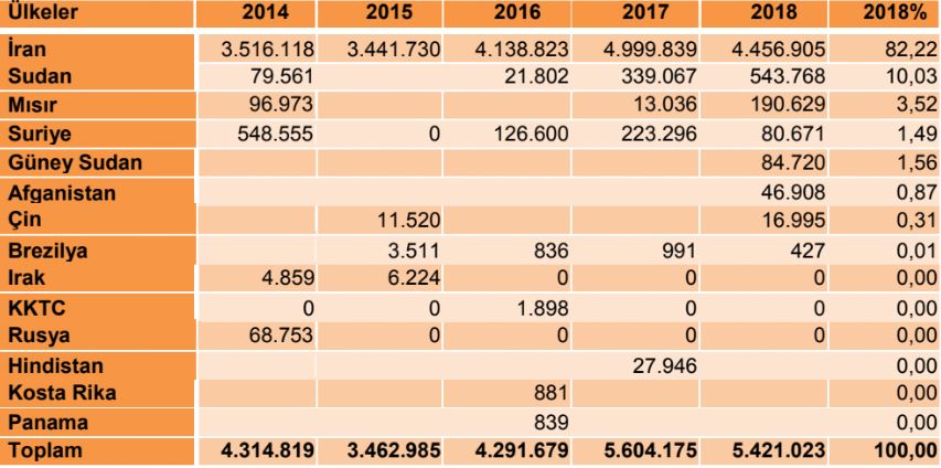 - 2018 yılında 62 bin ton karpuz ithal edilmiştir.
