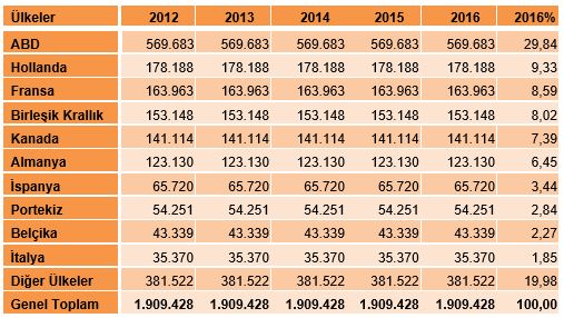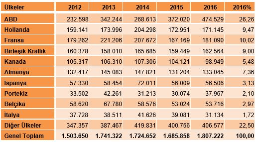 - En fazla kavun ithal eden ülke ABD olup, 2016 yılında 570 bin ton kavun ithal etmiştir.
