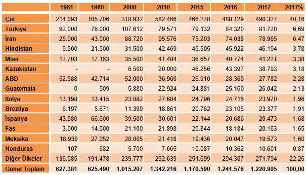 Kaynak; FAOStat