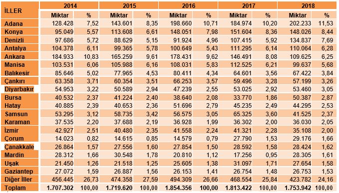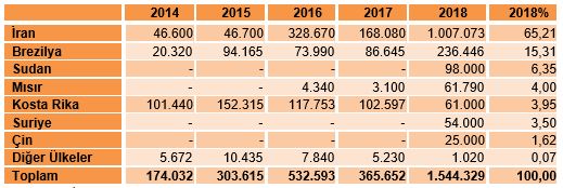 - 2018 yılında 1.500 ton kavun ithal edilmiştir.