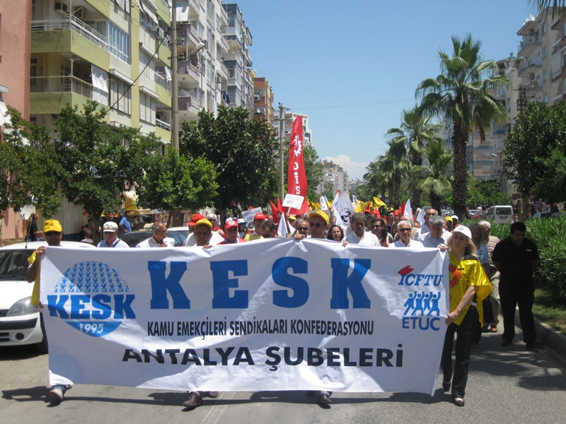 KESK ve DİSK tarafından Antalya‘da, başta 4-C olmak üzere çalışma koşullarını ve iş güvencesini ortadan kaldıran yasal düzenlemelere karşı yapılan protesto eylemine, Şube Başkanımız ve Antalya İKK Sekreteri Vahap TUNCER ile Yönetim Kurulu üyelerimiz ve meslektaşlarımız katıldılar.