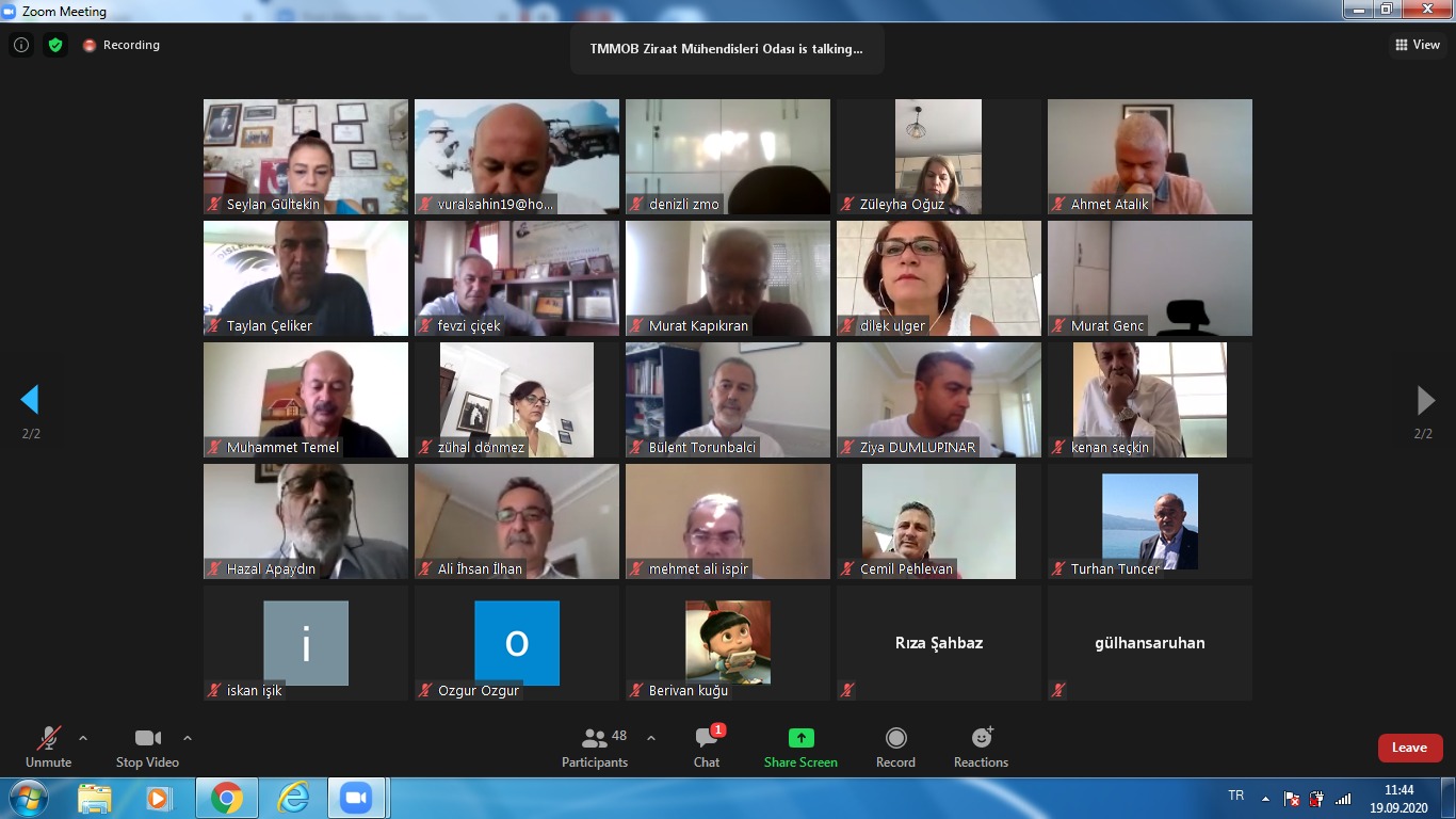 Danışma kurulu gündeminde yer alan; “Pandemi Sürecinin Ülke Tarımı ve ZMO Açısından Genel Değerlendirmesi, Güncel Konuların Değerlendirilmesi; Bitki Koruma Ürünleri, Toprak Koruma Kurulları, Tarımsal Yayım ve Danışmanlık, ZMO Örgütlülüğü – Ziraat Mühendislerinin İstihdam Sorunları, Mali Durum ve Aidat Ödemeleri, Eğitimler ve Hukuki Çalışmalar” başlıkları altında toplanan tüm konular, ODA Başkanımız Baki Remzi SUİÇMEZ, II. Başkanımız Caner AKSAKAL, ODA Yönetim Kurulu Sayman Üyemiz Tahsin Erman ÇAĞDAŞ ve ODA Yönetim Kurulu Yazman Üyemiz Mehtap ERCAN BİLGEN yönetiminde, katılımcıların yoğun ilgisi ve katılımları ile gerçekleştirildi.