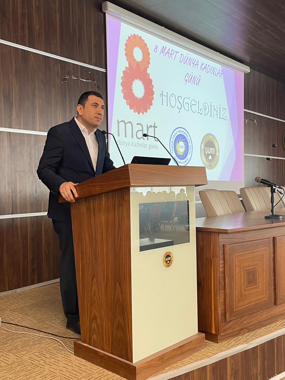 TMMOB Ziraat Mühendisleri Odası Şanlıurfa Şubesi ve Ticaret Borsası Ortak organizasyonu olan ''8 Mart Dünya Kadınlar Günü'' programı gerçekleştirildi. Programa katılım sağlayan tüm meslektaşlarımıza teşekkür ederiz.