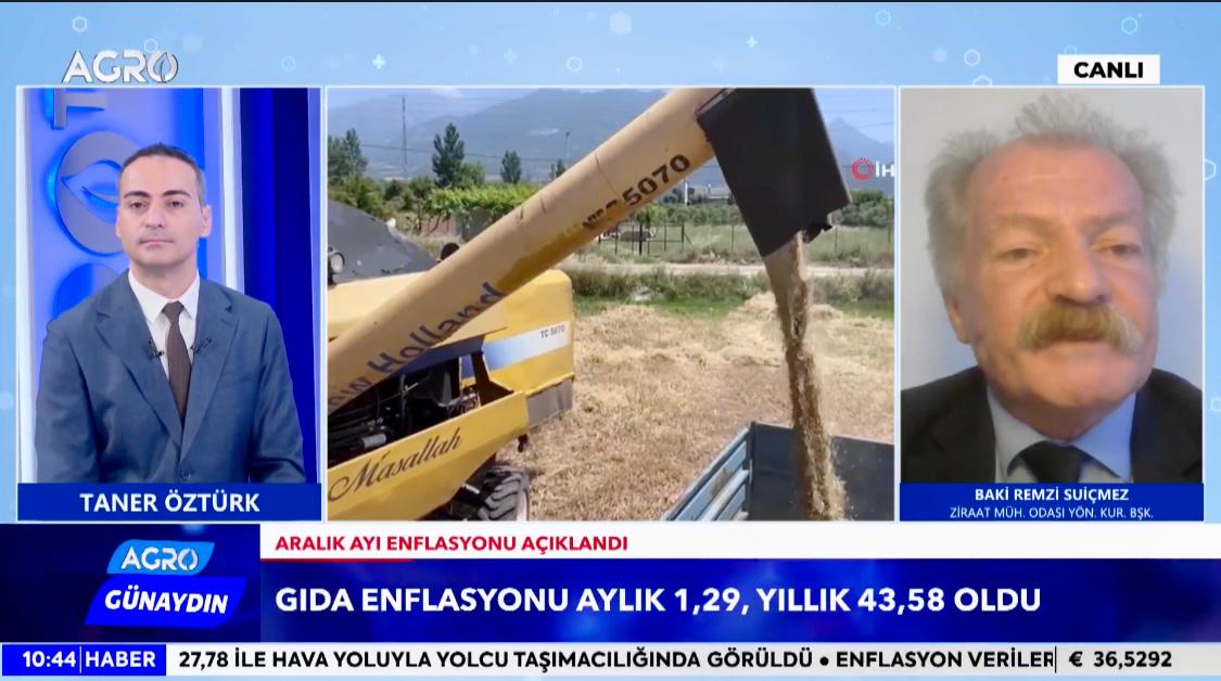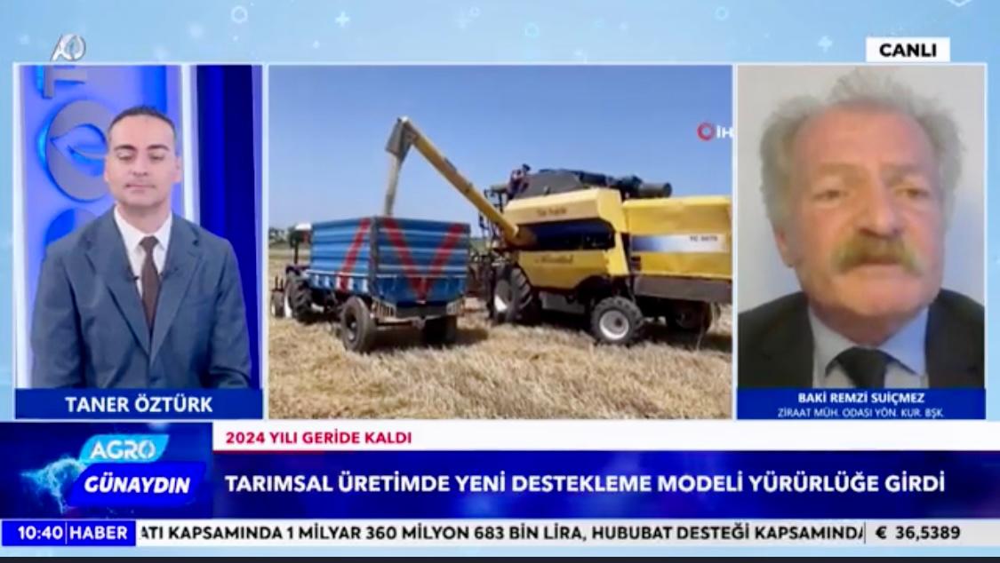 ODA Başkanımız Baki Remzi SUİÇMEZ, Agro TV’de Taner ÖZTÜRK’ün sunduğu “Agro TV ile Günaydın” programının 6 Ocak 2025 Pazartesi günü saat 10.30’da uzaktan bağlantı ile canlı yayın konuğu oldu.