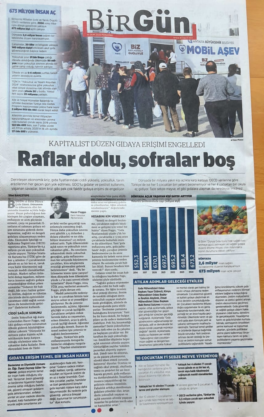 BİRGÜN GAZETESİ: KAPİTALİST DÜZEN GIDAYA ERİŞİMİ ENGELLEDİ: RAFLAR DOLU, SOFRALAR BOŞ - 16 EKİM 2025