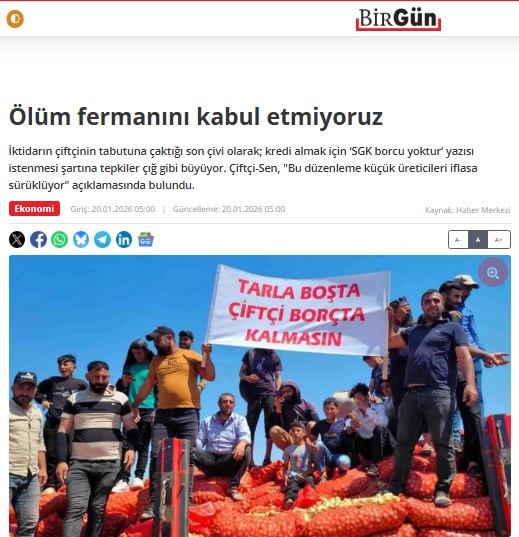 BİRGÜN GAZETESİ: ÖLÜM FERMANINI KABUL ETMİYORUZ- 20 OCAK 2026