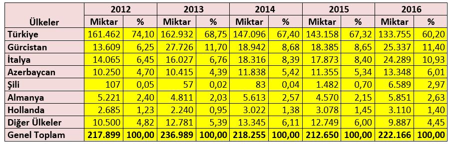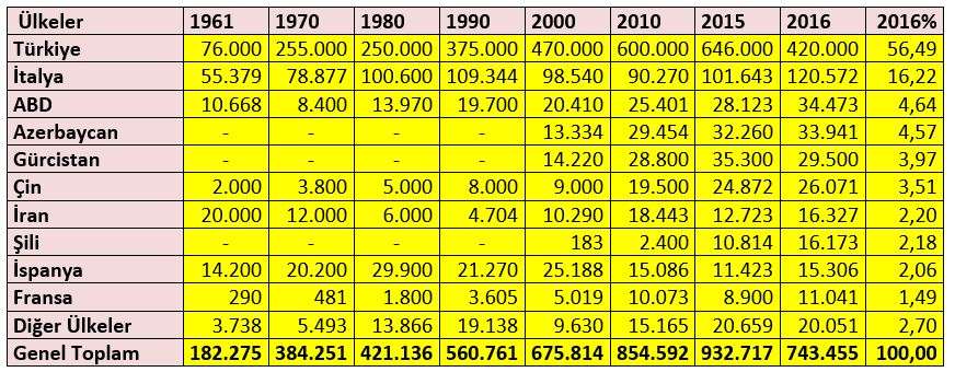 Çizelge-5 Ülkelerin Fındık Üretimi (ton)