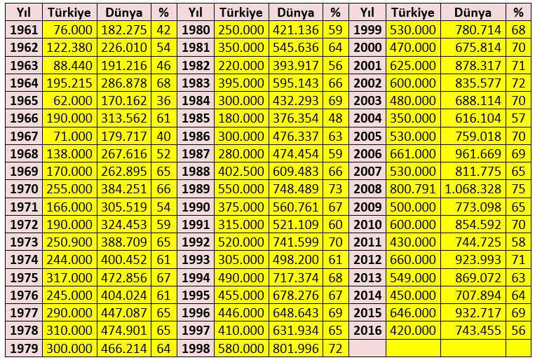 Çizelge-3 Türkiye ve Dünya Fındık Üretimi