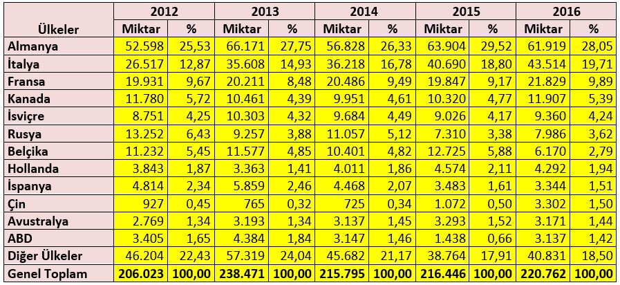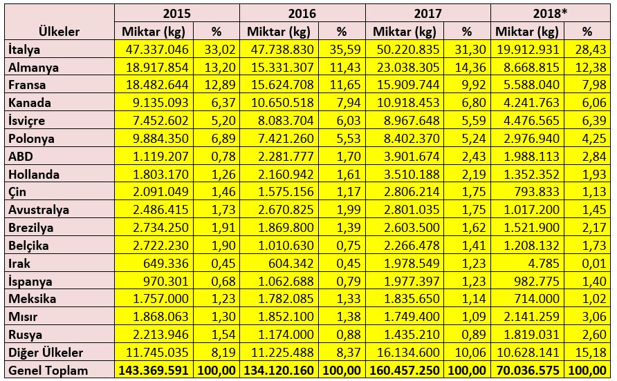 Dünya fındık ithalatına bakıldığında Almanya ve İtalya’nın ilk sırada yer aldığı görülmektedir.