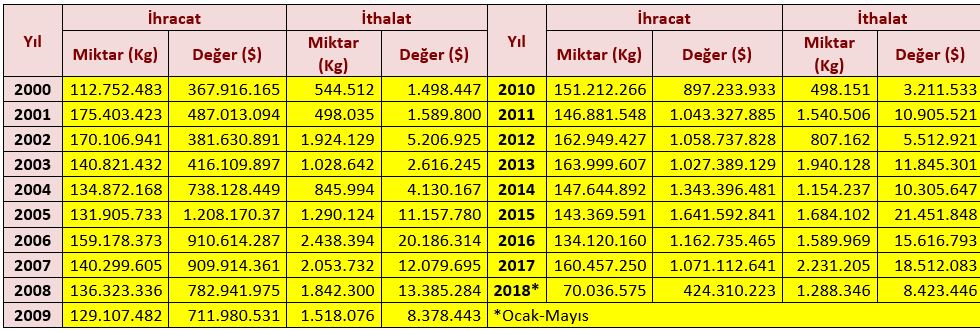 Çizelge-6 Türkiye’nin Fındık Dış Ticareti