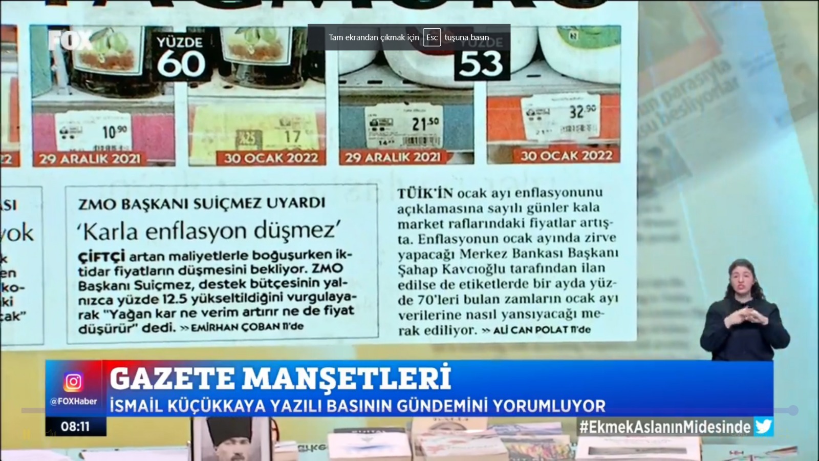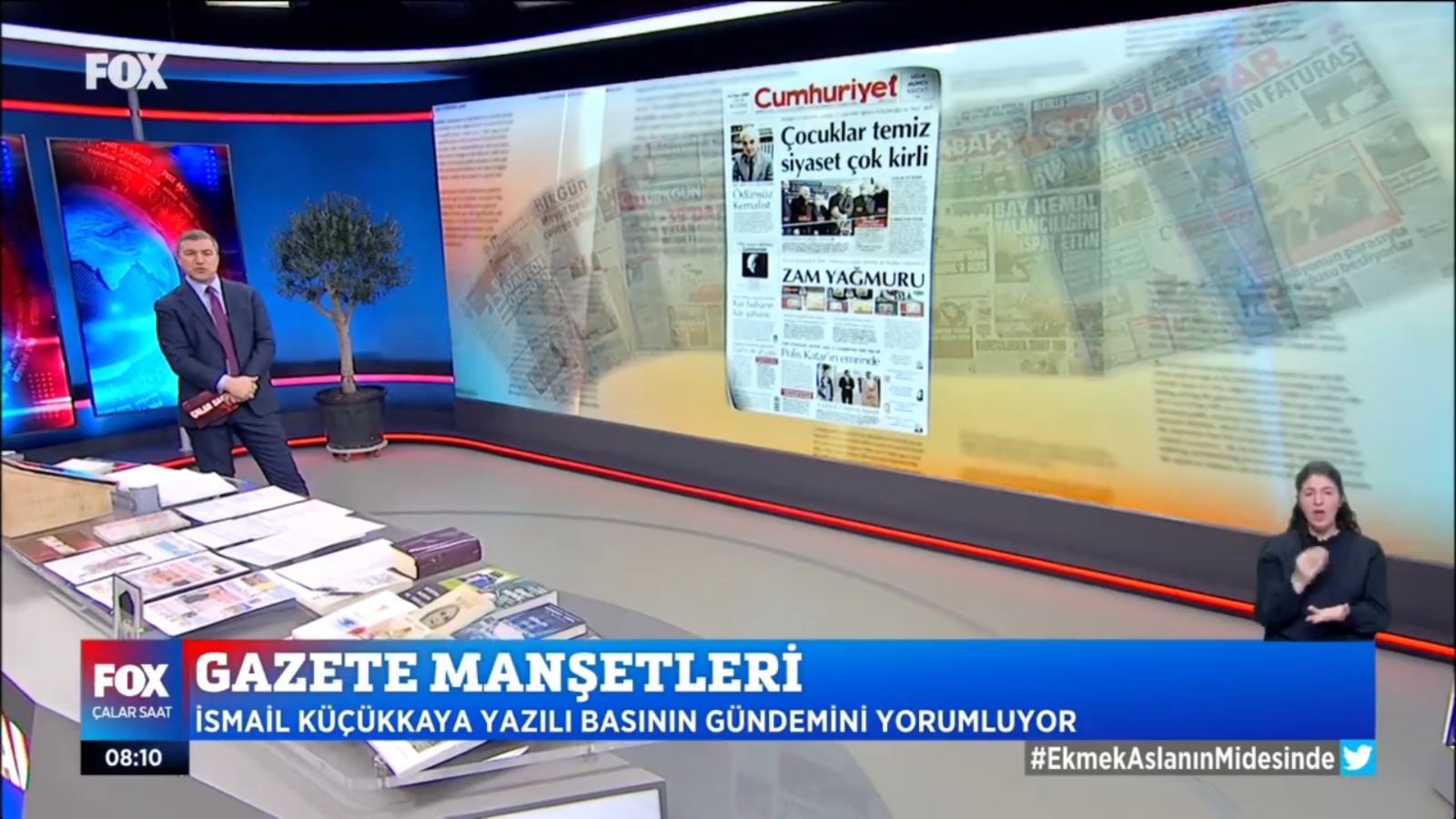 FOX TV’de İsmail KÜÇÜKKKAYA tarafından sunulan “İsmail Küçükkaya ile Çalar Saat” adlı programın, 31 Ocak 2022 Pazartesi günü saat 08.10’da yayınlanan “Gazete Manşetleri” bölümünde, ODA Başkanımız Baki Remzi SUİÇMEZ’in Cumhuriyet gazetesine “kar yağışının tarıma etkisi” hakkında verdiği röportaja yer verildi.