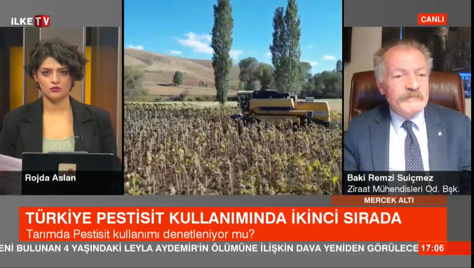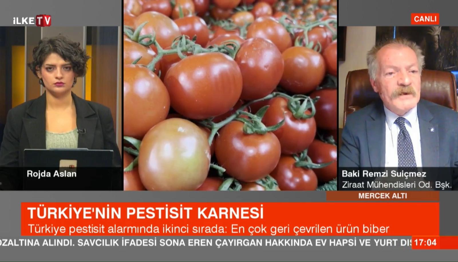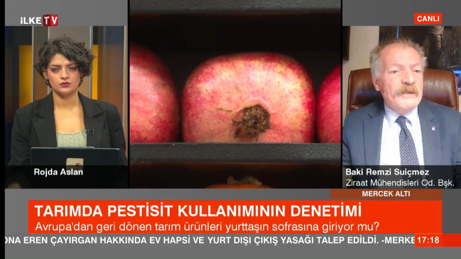 Başkanımız programda; Türkiye’de pestisit kullanımı, pestisit kalıntısı nedeniyle Avrupa Birliği’ne ihraç edilen ürünlerin geri dönmesi ve tarımda kullanılan pestisitlerin denetim süreçlerine ilişkin sorunları değerlendirdi.