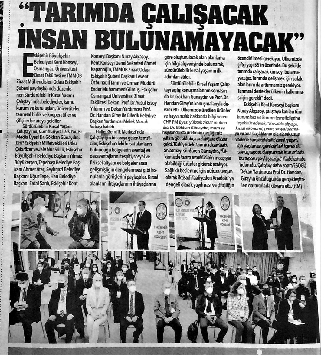TMMOB Ziraat Mühendisleri Odası Eskişehir şubemiz tarafından 8 Mart 2022 tarihinde ESOGÜ Ziraat Fakültesi ve Eskişehir Kent Konseyi paydaşlığında gerçekleştirilen “Sürdürülebilir Kırsal Yaşam Çalıştayı” sonrası Ziraat Fakültesi’nde bir araya geldik.