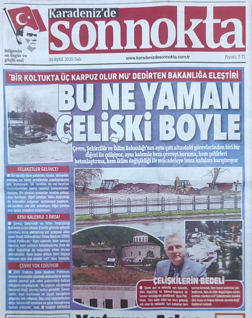 KARADENİZ'DE SON NOKTA GAZETESİ-KORUMAKLA GÖREVLİ BAKANLIK NEREDE?-30.09.2025