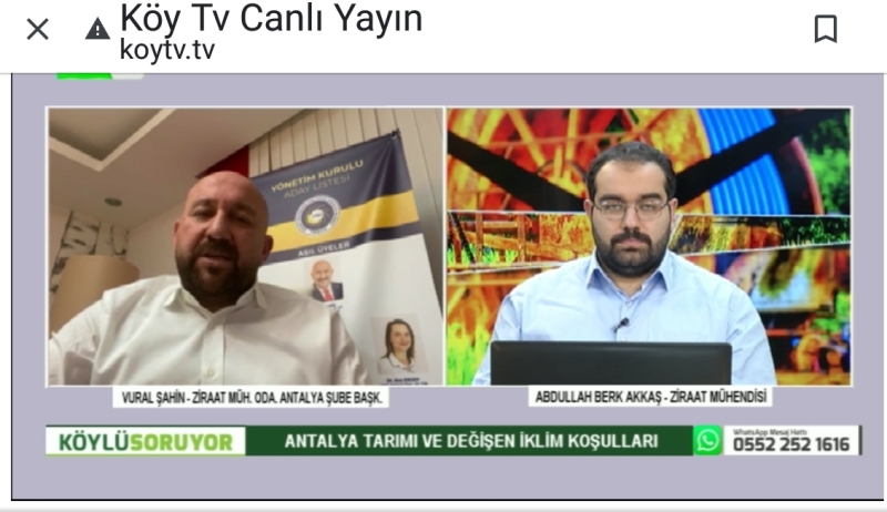 Şube Başkanımız Vural Şahin 25 Aralık 2020 tarihinde Köy Tv de yayınlanan Köylü Soruyor programının konuğu oldu. Programda, Antalya tarımı, sorunları ve çözüm önerileri değerlendirildi.