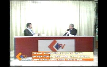 Şube Başkanımız Özkan TAŞPINAR, KTV‘de Fahrettin ŞANAL tarafından sunulan ve canlı yayından "EMPATİ" programına katıldı. Başkanımız Özkan TAŞPINAR, 7.Olağan Genel Kurul ile ZMO Konya Şubesi Yönetimine gelmelerinin ardından geçen 1 yıl içerisinde yapılan çalışmalar ve ülkemiz ve Konya tarım ve hayvancılığında Türkiye gündemi hakkında Fahrettin ŞANAL‘ın sorularını cevapladı.