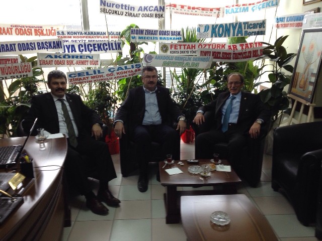 Ziraat Mühendisleri Odası Konya Şube Başkanımız Celil ÇALIŞ ile Yönetim Kurulu üyelerimiz, Muhammet Uğur KALELİ‘nin Milletvekilliği Aday Adaylığı için istifa etmesinin ardından Konya Ticaret Borsası Yönetim Kurulu Başkanı seçilen Hüseyin ÇEVİK‘e, 11. Olağan Genel Kurulu ile güven tazeleyen Meram Ziraat Odası Başkanı Ali ATAİYİBİNER‘ e ve 12. Olağan Genel Kurulu sonucu göreve gelen Karatay Ziraat Odası Başkanı Rıfat KAVUNEKER‘e yaptıkları kutlama ziyaretlerinde, Konya tarımının sorunları ve çözümleri konusunda görüş alışverişinde bulunuldular.