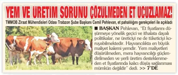KUZEYEKSPRES GAZETESİ:YEM VE ÜRETİM SORUNU ÇÖZÜLMEDEN ET UCUZLAMAZ!.-03 MART 2026
