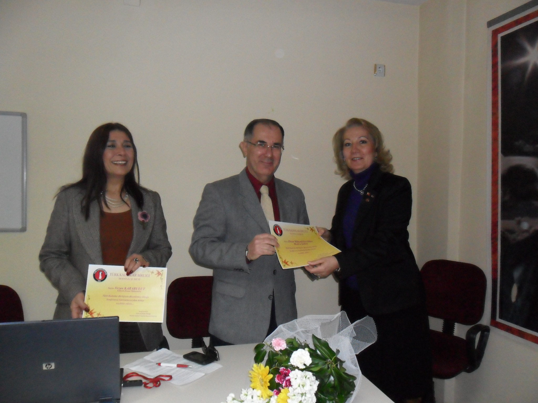 Konferans sonunda Birlik Başkanı Sevgi ŞANLI ve Yönetim Kurulu üyeleri tarafından Vezan KARABULUT ve Şube 2. Başkanımız Ali IŞIK‘a teşekkür belgesi verildi.
