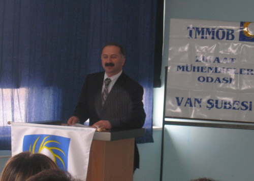 Van Şubemiz, Yüzüncü Yıl Üniversitesi Öğrenci Temsilciliği ile işbirliği yaparak, 1 Mart 2006 Çarşamba günü “Odamız ve Mesleğimiz” konulu bir eğitim toplantısı gerçekleştirdi. Y.Y.Ü. Ziraat Fakültesi seminer salonunda yapılan çalıştaya, Dekan Yardımcıları Doç. Dr. Şefik TÜFENKÇİ ve Yrd. Doç. Dr. Semra DEMİR ile Prof. Dr. Nafi ÇOKSÖYLER’in yanı sıra önceki dönem Şube Başkanımız Cevdet ALTINDAĞ da katılarak, katkıda bulundu. Öğrencilerin yoğun ilgi gösterdikleri etkinlikte, Van Şube Başkanımız Necip ALTUNLİ tarafından ODA’mız ve mesleğimizi tanıtıcı bilgiler verildi. Daha sonra Şube II. Başkanı M. Şerif KAYALIK ve Şube Yönetim Kurulu Üyesi Alev ŞAHAR tarafından hazırlanan görsel sunu eşliğinde yapılan çalışmalar hakkında bilgi aktarıldı.