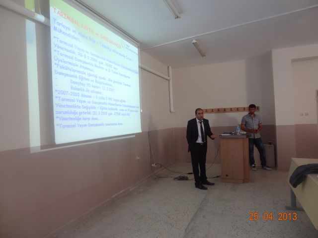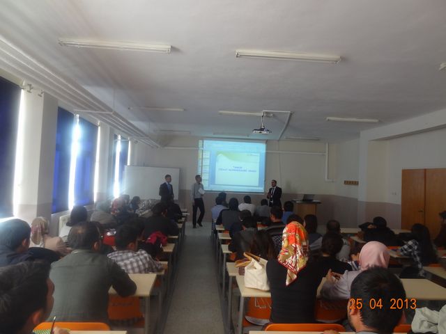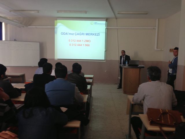 Yüzüncü Yıl Üniversitesi Ziraat Fakültesi Dekan Yardımcısı ve aynı zamanda oda üyemiz olan Prof. Dr. Semra DEMİR`in organize ettiği çalışmada fakülteye bağlı bütün bölümlerin son sınıf öğrencileri ile buluştuk. Odamız hakkındaki sunum Şube Yönetim Kurulu Üyesi Erkan IŞIK tarafından yapıldıktan sonra öğrencilerin mezuniyet sonrası yapabilecekleri projeler konusunda bilgiler Şube Yönetim Kurulu Üyeleri M. Şerif KAYALIK ve Murat DEMİR tarafından verildi. Etkinliğin sonunda önümüzdeki dönem odamızı temsil edecek öğrenci seçimi yapıldı.