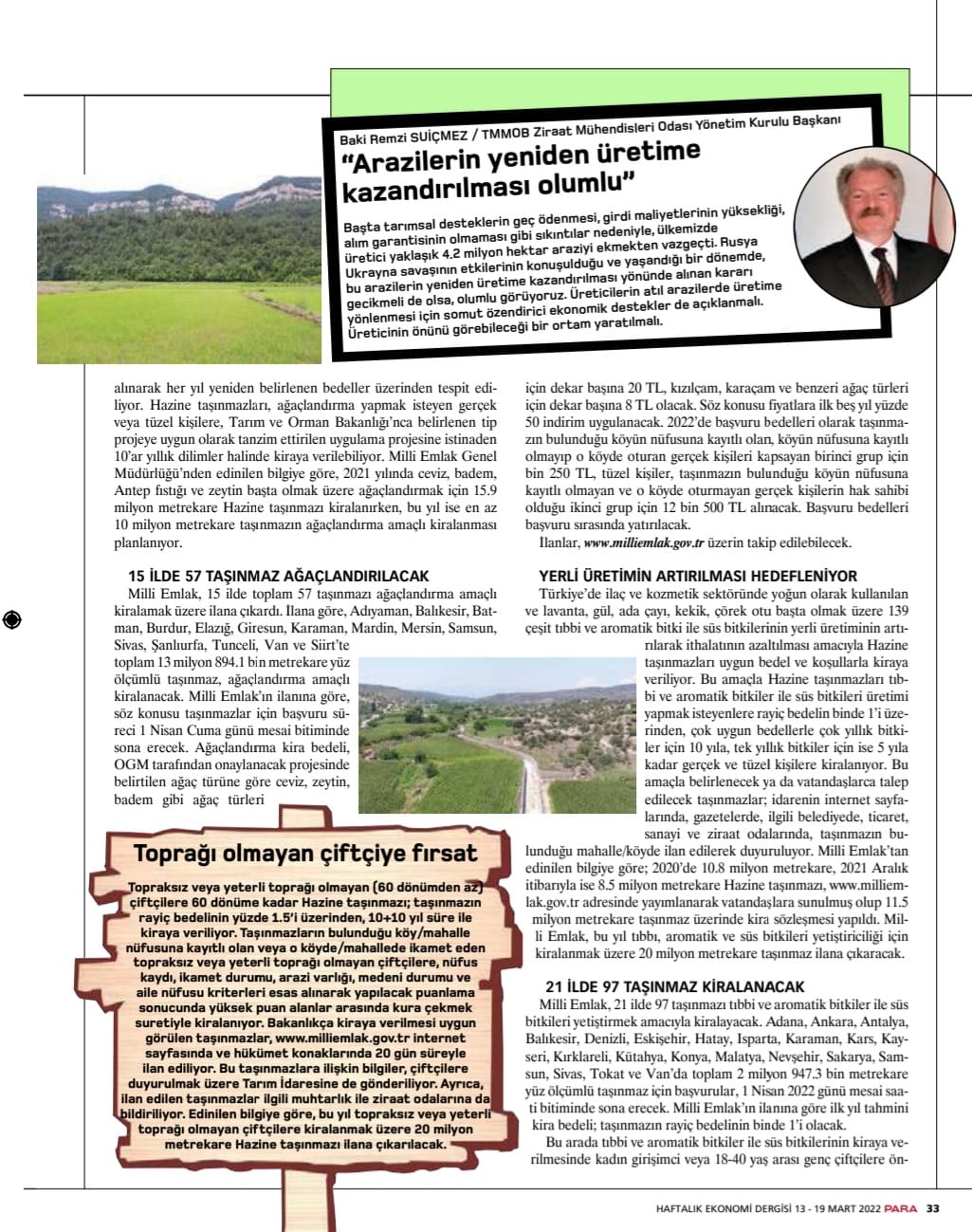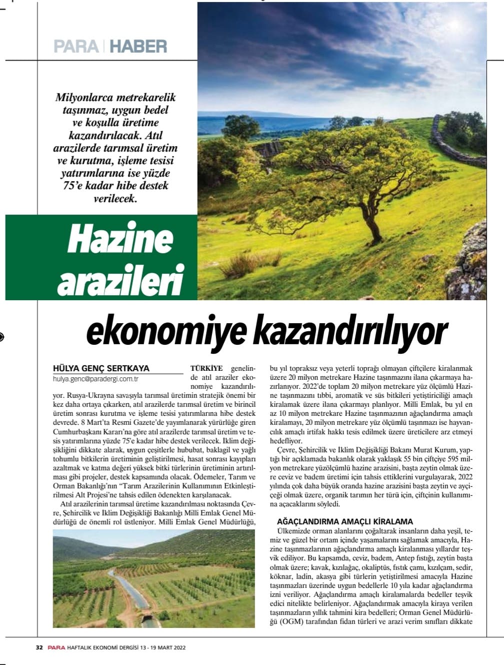 PARA DERGİ: HAZİNE ARAZİLERİ TARIMSAL ÜRETİME AÇILIYOR- 21 MART 2022