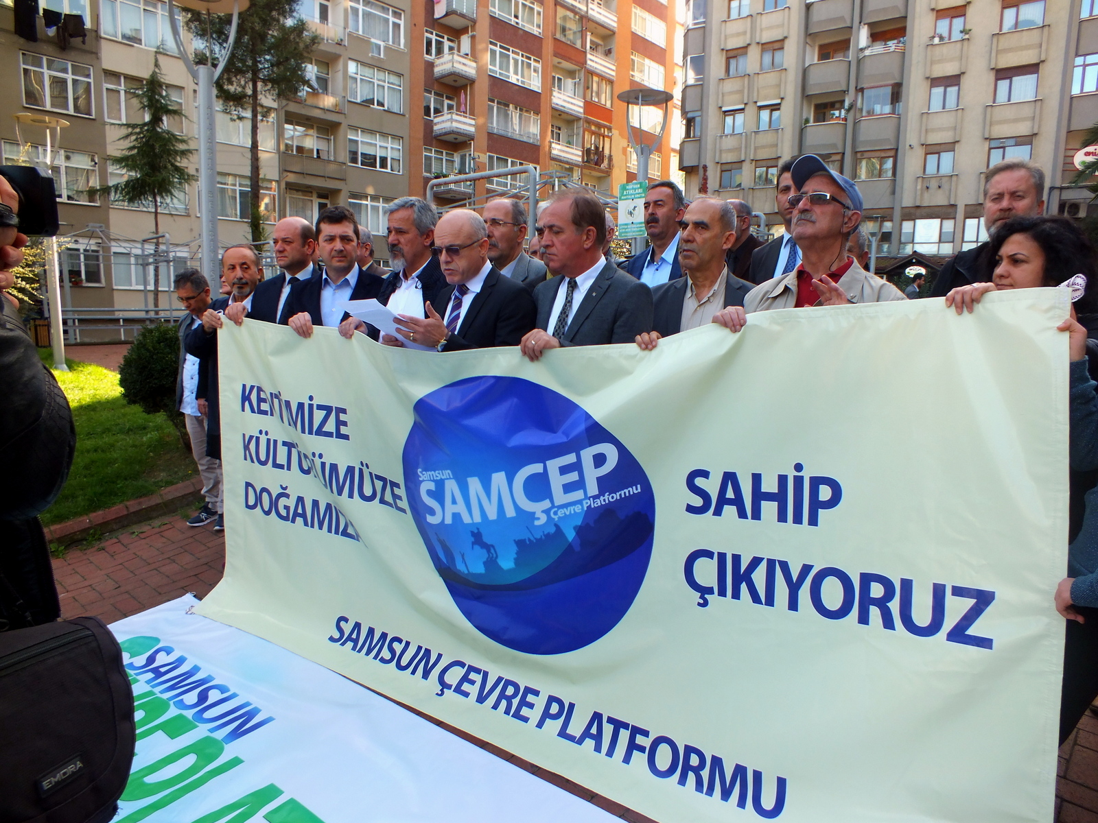 SAMSUN ÇEVRE PLATFORMU (SAMÇEP), Samsun`un ekolojik, kentsel, doğal, çevresel, tarihsel, sosyal, kültürel değerleriyle birlikte korunması ve gelecek kuşaklara ve zamanlara taşınabilmesi amacıyla Türk Mühendis ve Mimar Odaları Birliği (TMMOB) Samsun İl Koordinasyon Kurulu (İKK) öncülüğünde bir araya gelen yirmiye yakın meslek odası, sendika, demokratik sivil toplum kuruluşu tarafından kuruldu. Bugün SAMÇEP bileşenleri bir araya geldi ve basın açıklaması yaparak "Samsun`un sahibi var" dedi.