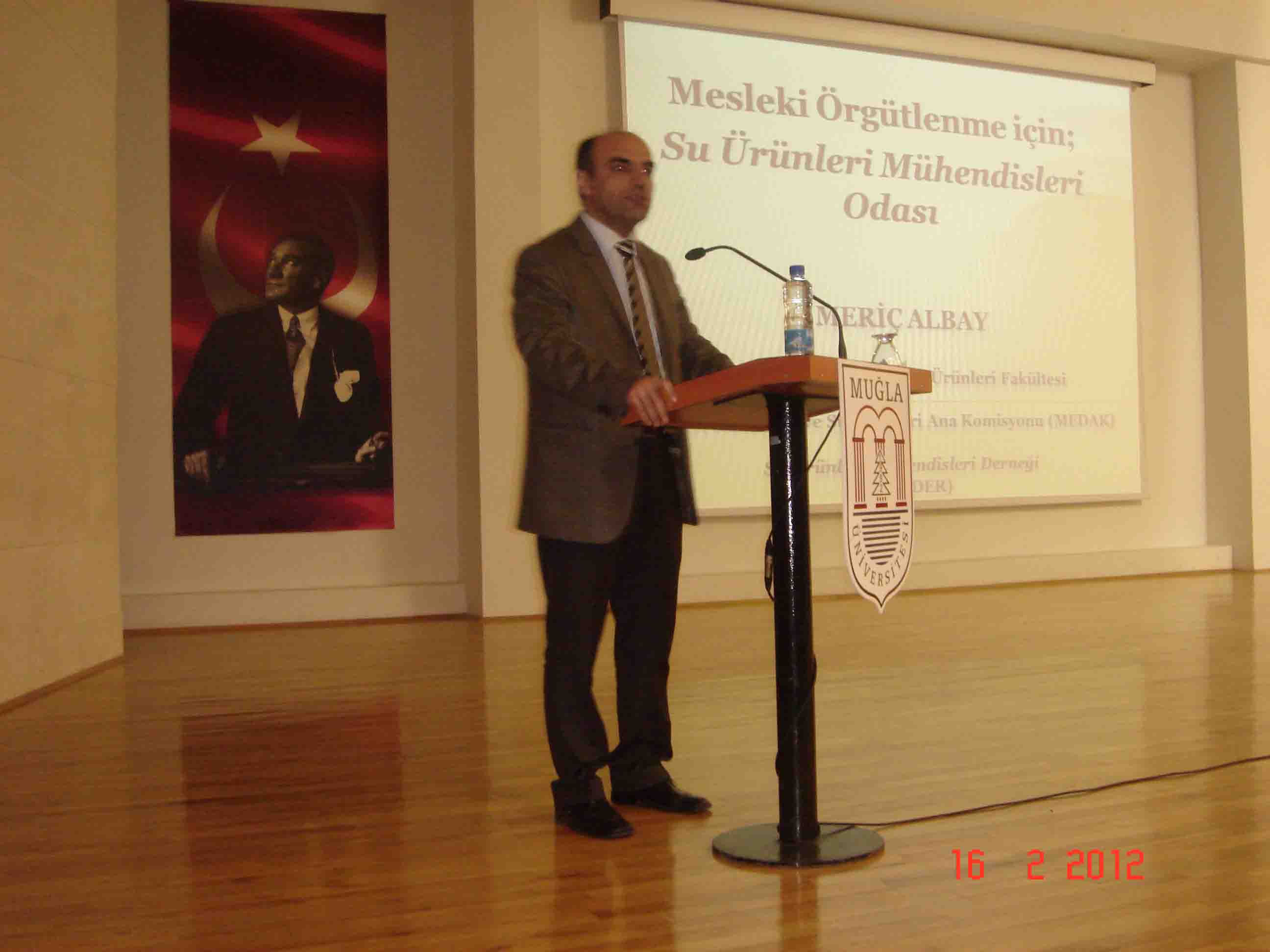 Muğla Üniversitesi Su Ürünleri Fakültesi‘nce 16.02.2012 tarihinde üniversitenin Atatürk Kültür Merkezi B salonunda düzenlenen etkinlik kapsamında, ZMO Su Ürünleri ve Balıkçılık Meslek Dalı Ana Komisyonu Başkanı Prof. Dr. Meriç ALBAY tarafından ODA‘mızın Su Ürünleri Mühendislerine yönelik çalışmaları konusunda konferans verildi. Konferansın başlangıcında Şube Başkanı Uluhan KORKUT tarafından Mühendislik, Oda ve Öğrenci Kolu Yönergesi hakkında bilgilerin yer aldığı bir sunum yapıldı.