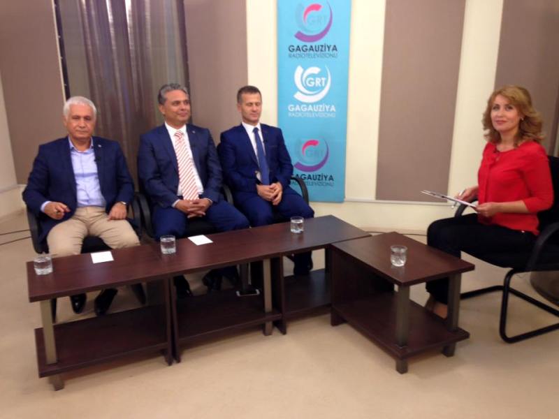 Şube Başkanımız Vahap TUNCER, 21.09.2016 tarihinde, Muratpaşa Belediye Başkanı Ümit UYSAL ve Komrat Belediye Başkanı Serghei ANASTASOV ile Gagavuzya TV de Gagavuzya ve Antalya tarım sektörünün işbirliği konusunda yapılacak projeleri değerlendirdi.