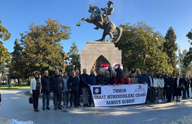 Tarımsal Öğretimin 179. yıl dönümü etkinlikleri kapsamında 10 Ocak 2025 Cuma günü TMMOB Ziraat Mühendisleri Odası Samsun Şube ve19 Mayıs Üniversitesi Ziraat Fakültesi Dekanlığı ile ortaklaşa olarak ilimiz Atatürk - Onur Anıtı` nda Şube yönetim kurulu üyelerimiz ve meslektaşlarımızın katılımıyla çelenk sunumu, Saygı duruşu ve İstiklal Marşı okunmuştur.