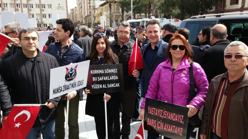 BİLEŞENLERİ ARASINDA BULUNDUĞUMUZ MANİSA AKADEMİK ODALAR BİRLİĞİ OLARAK DÜZENLENEN TERÖRE ALIŞMAYACAĞIZ YÜRÜYÜŞÜNE YÖNETİM OLARAK KATILDIK VE TERÖRÜ LANETLEDİK.