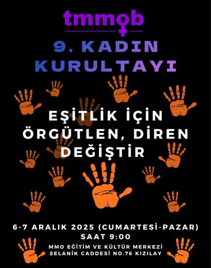 TMMOB 48. Dönem Kadın Çalışma Grubu tarafından, "Eşitlik için Örgütlen Diren Değiştir" ana başlığıyla planlanan TMMOB 9. Kadın Kurultayı 6-7 Aralık 2025 tarihinde MMO Eğitim ve Kültür Merkezi'nde gerçekleştirilecek.