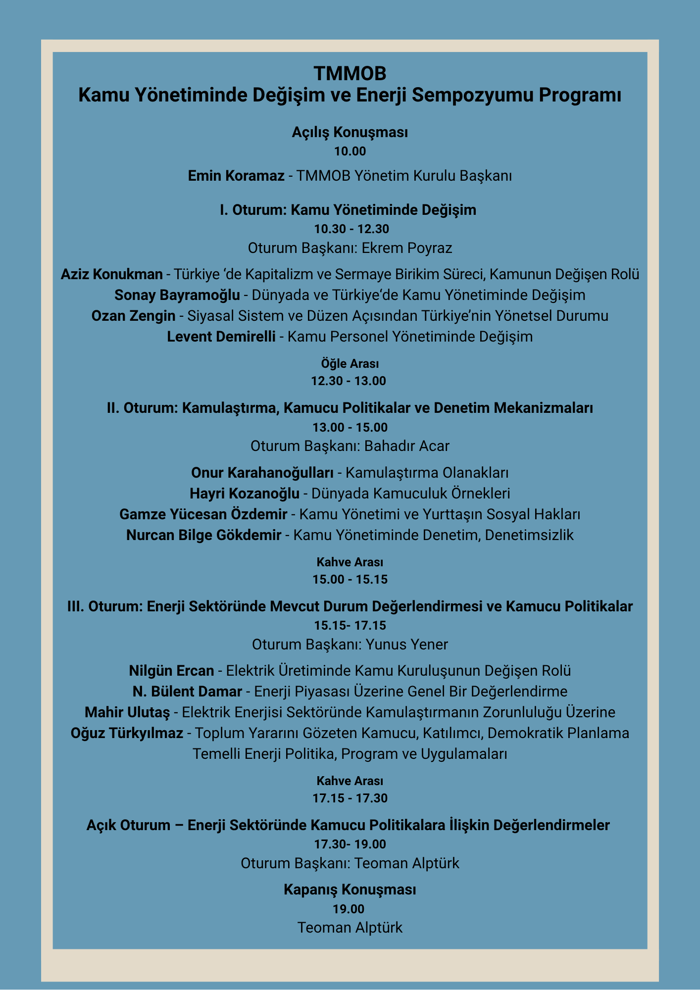 TMMOB Kamu Yönetiminde Değişim ve Enerji Sempozyumu Programı