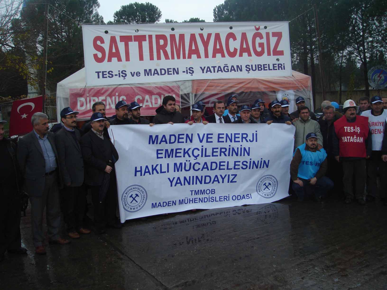 4 Aralık Madenciler Günü‘nde, TMMOB Maden Mühendisleri Odası ile birlikte Yatağan GELİ işçilerinin direnişine destek verdik.