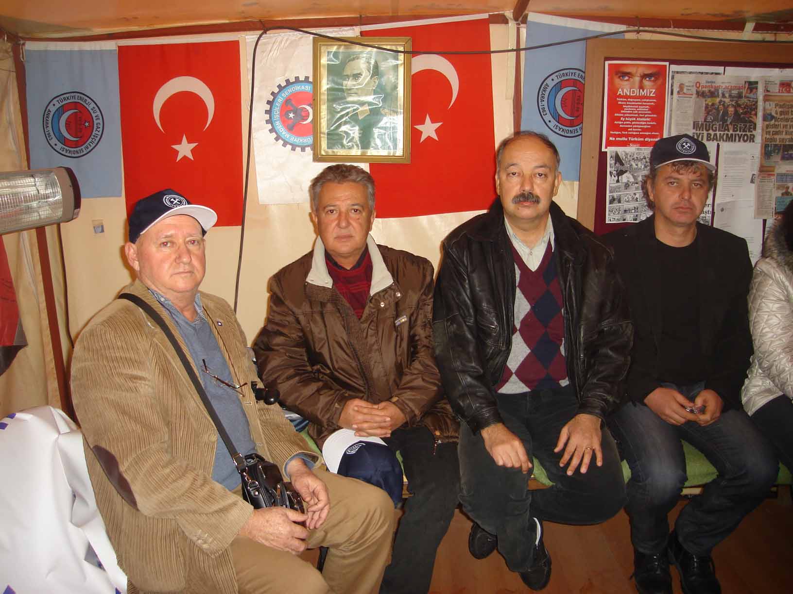 Şube Başkanımız Uluhan KORKUT, II. Başkanımız Ünal KİRAZ, Şube Saymanı Hüseyin GÜVEN ve üyemiz Bahadır TAMER santral önüne kurulan direniş çadırını ziyaret ettiler.