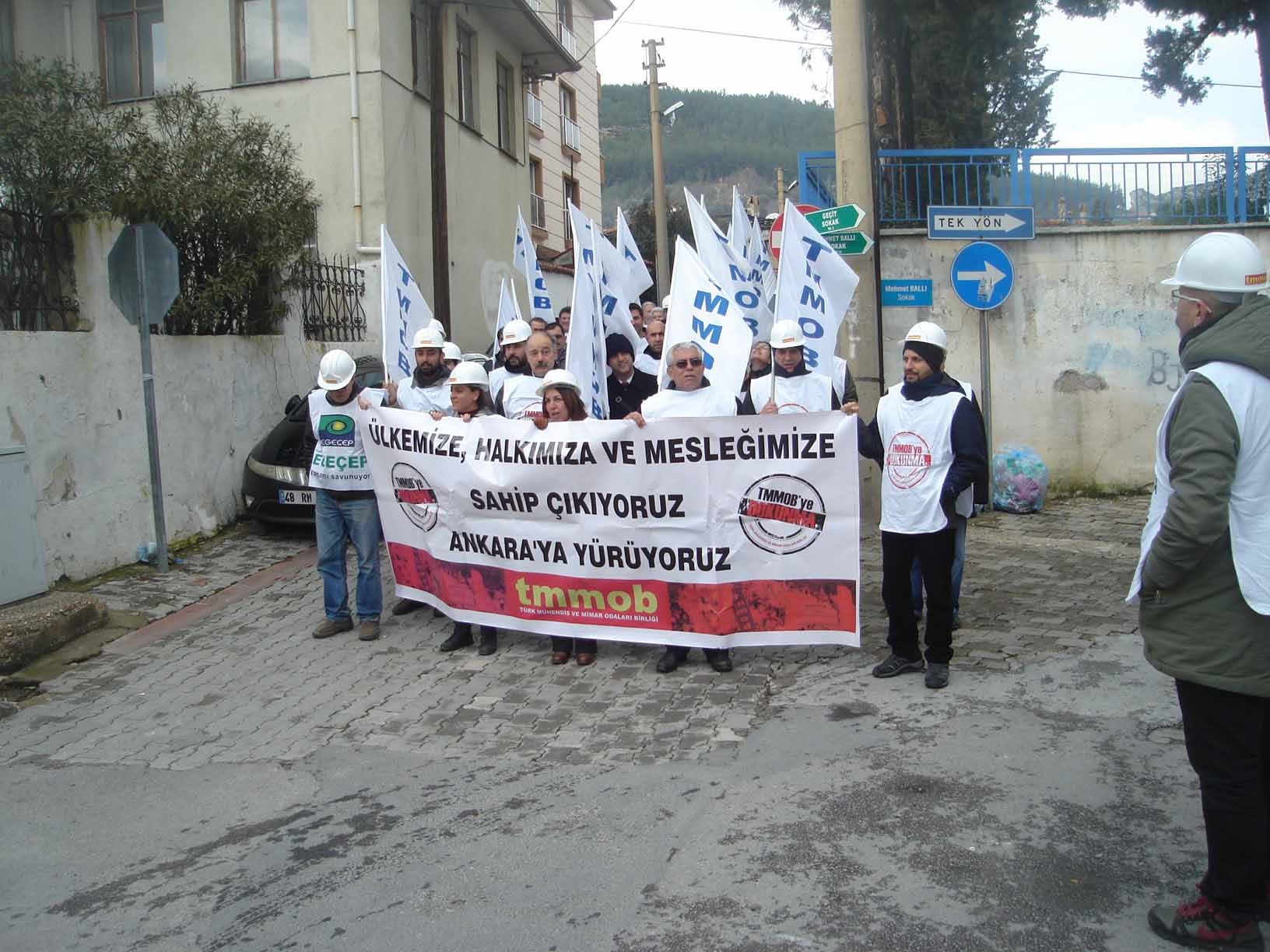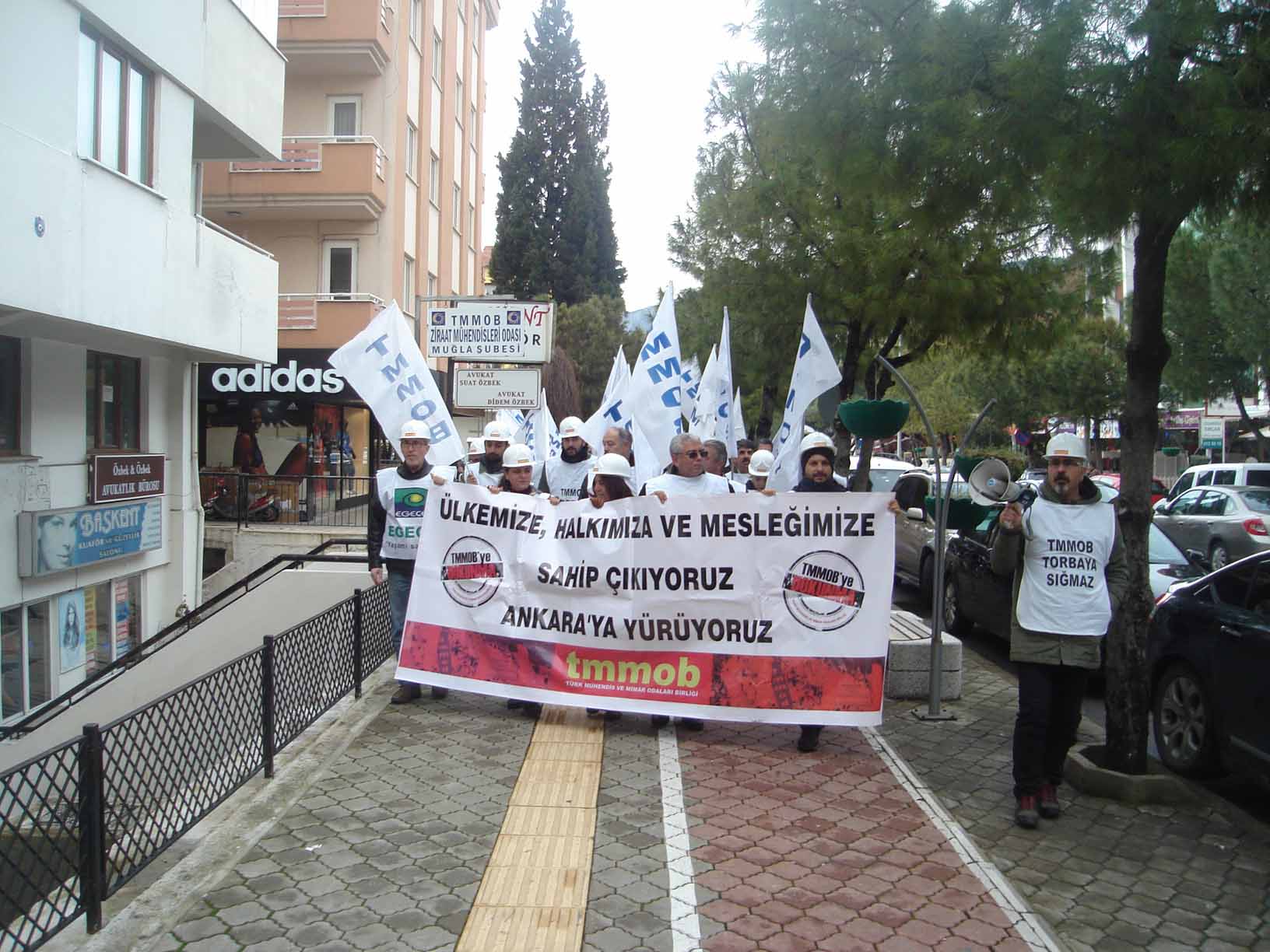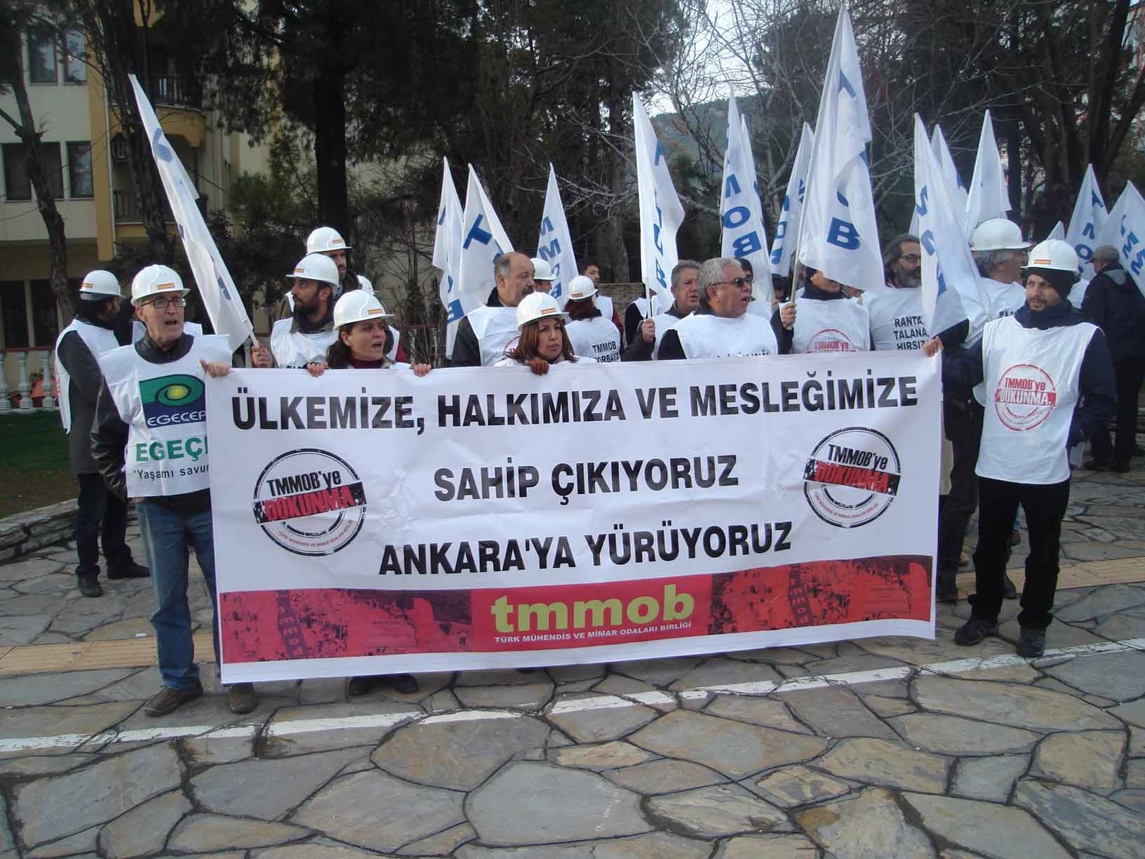 Torba Yasaya karşı yapılan mücadele kapsamında TMMOB Muğla İl Koordinasyon Kurulu olarak İnşaat Mühendisleri Odası önünde toplanarak, Sınırsızlık Meydanı‘na kadar yürüdük.