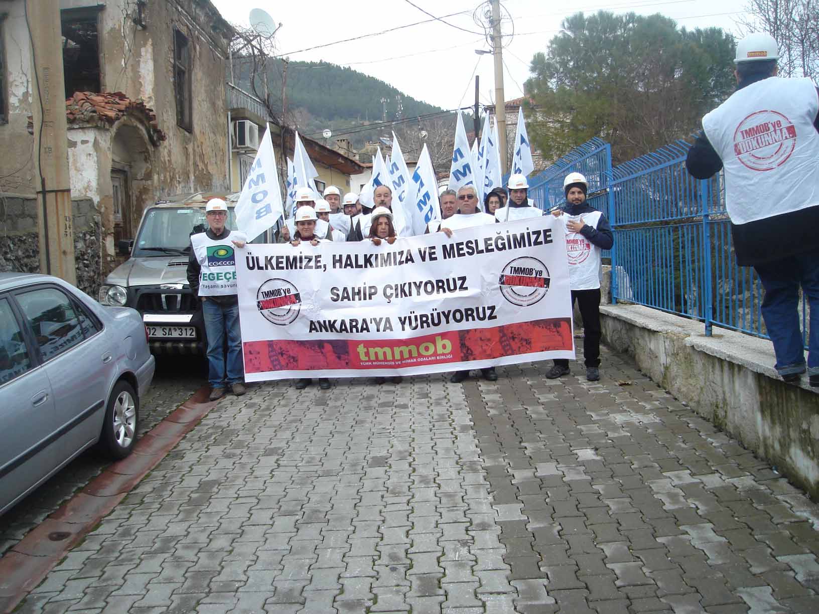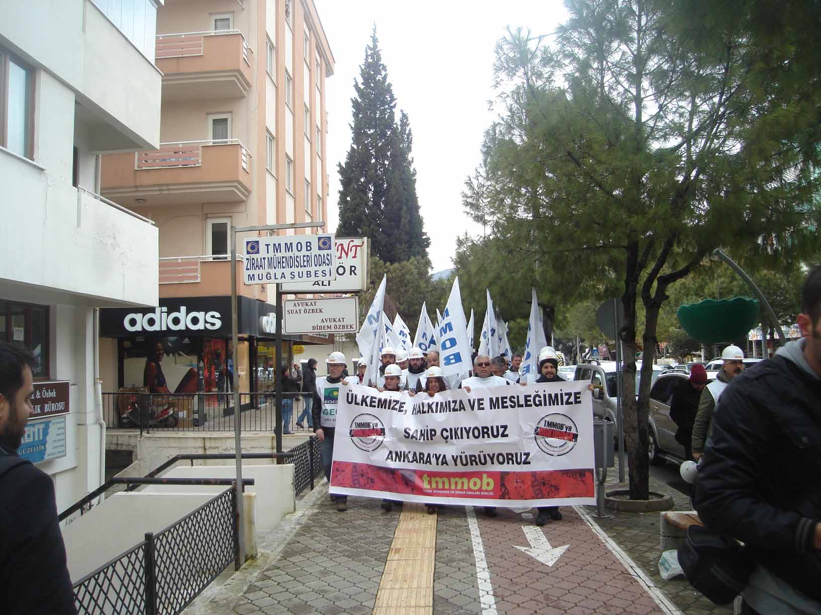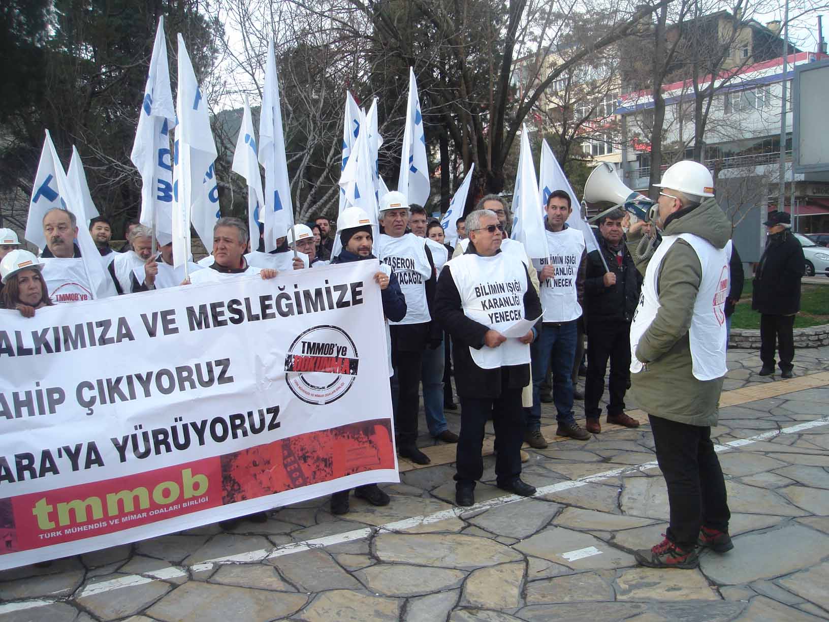 Torba Yasaya karşı yapılan mücadele kapsamında TMMOB Muğla İl Koordinasyon Kurulu olarak İnşaat Mühendisleri Odası önünde toplanarak, Sınırsızlık Meydanı‘na kadar yürüdük.