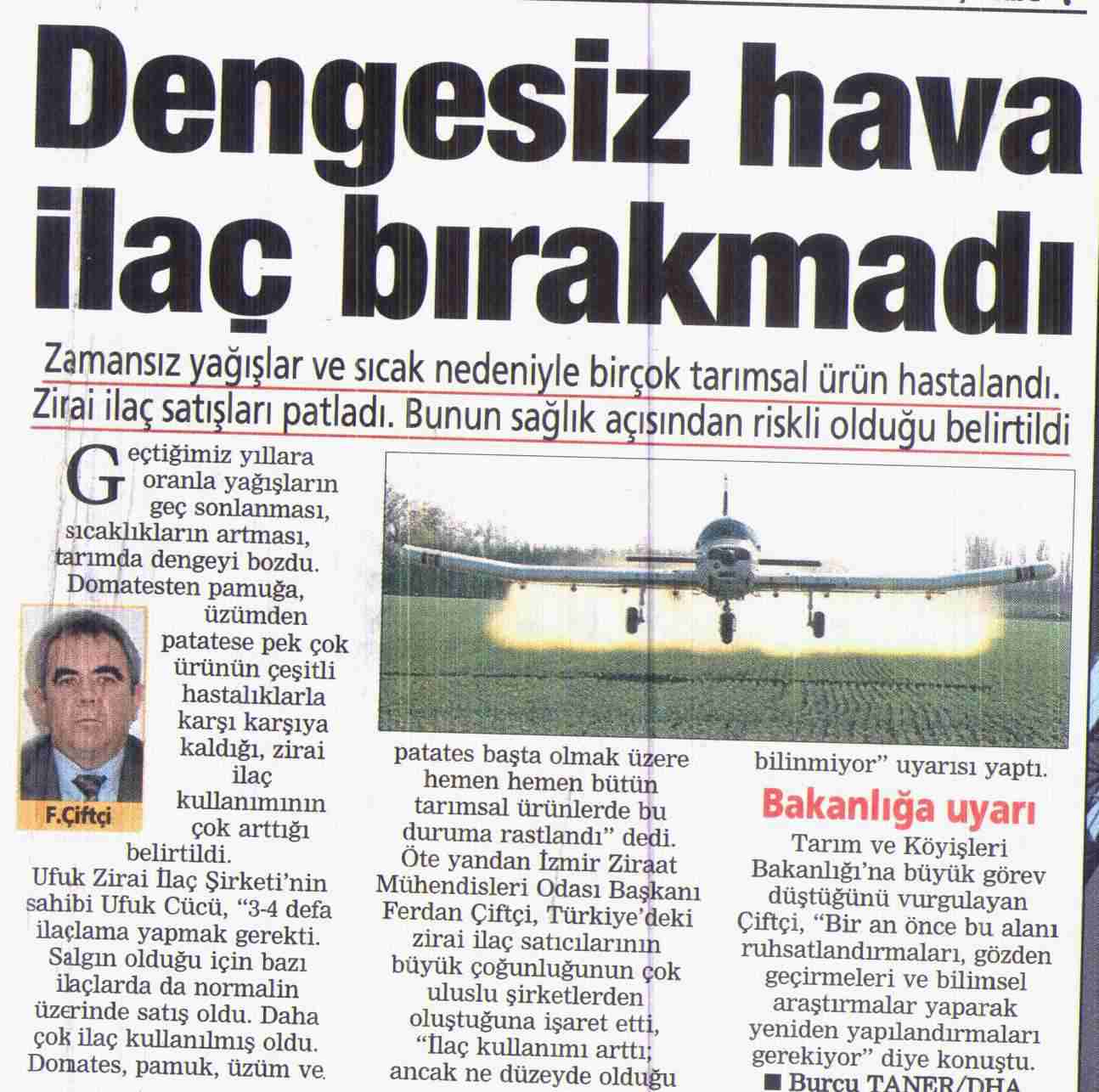 Şube Başkanımız Ferdan ÇİFTÇİ 28 Haziran‘da Doğan Haber Ajansına artan Zirai İlaç kullanımları ile ilgili açıklamalarda bulundu. Çiftçi özellikle Mildiyödeki Epideminin, ilaç kullanımlarındaki artışta etkili olduğunu söyledi ve doz sorununa dikkat çekti. Aynı konuda Yönetim Kurulu Yedek Üyemiz Ufuk CÜCÜ de muhabirin sorularını yanıtladı.