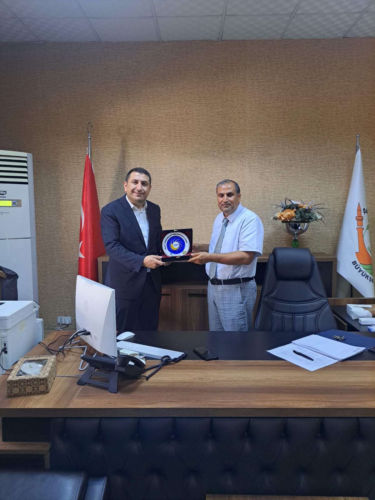 Şube Başkanımız Mehmet SÜZEN ve Yönetim Kurulu üyelerimiz Şanlıurfa Büyükşehir Belediyesi Beltaş Genel Müdür Yardımcısı Mustafa MERAL , Kırsal Hizmetler Daire Başkanı Mustafa KOŞAR ve Tarımsal Hizmetler Daire Başkanı Halil HATİPOĞLU'nu ziyarette bulundular. Çalışmalarında başarılar dileriz.